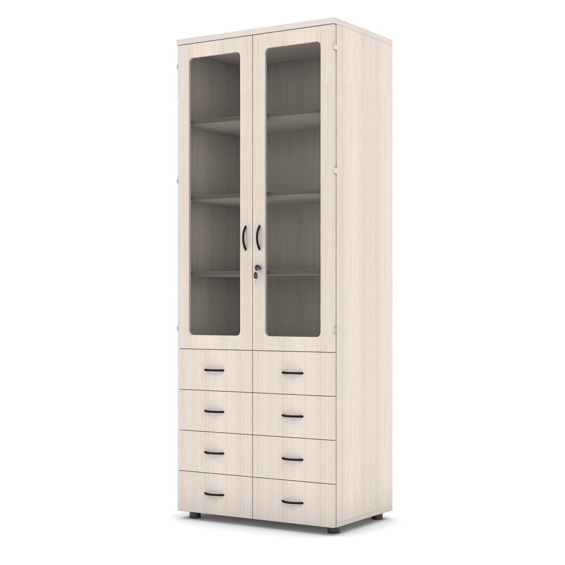 Armário Extra-Alto Fechado Com 02 Portas De Vidro E 08 Gavetas